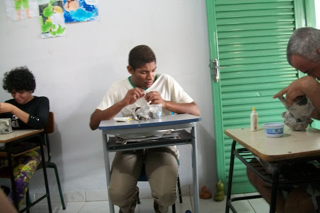 Está pregando pequenos pedaços de jornal. Chama -se papietagem. Depois virá com um que é um papel branco de costura. Usa este para não gastar muito a base acrílica que não temos dinheiro para comprar.