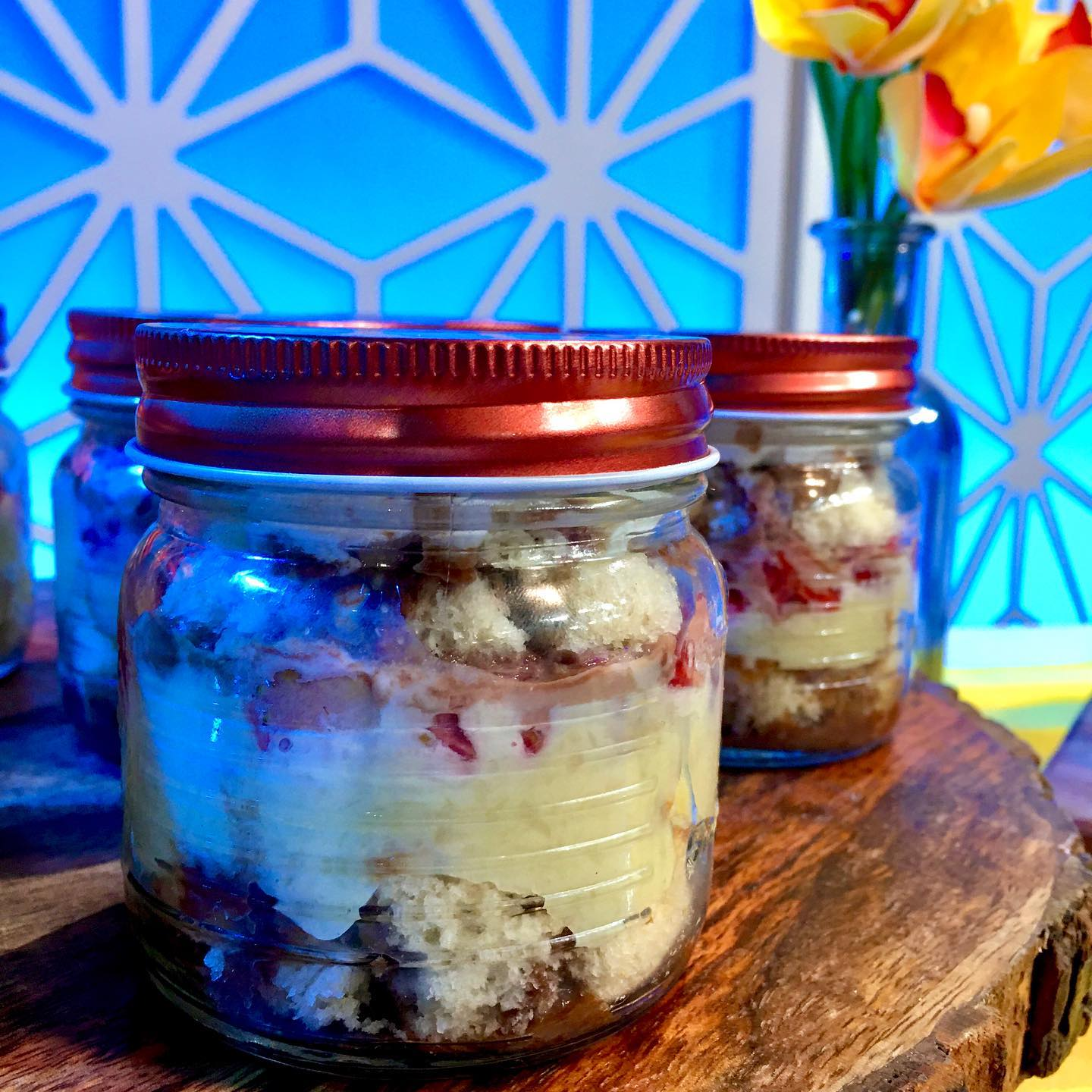 7 – Vá colocando a gelatina de morango pelos cantos da forma cuidadosamente, ate que seu recheio fique boiando,