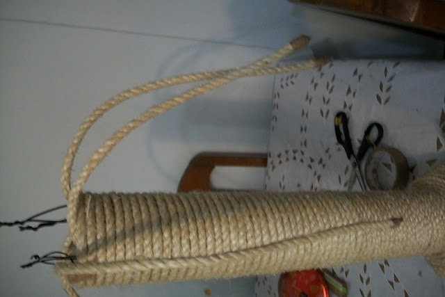 O brinquedo pronto. Foram 20 metros de corda 6 colas quente grossas. Meio metro de cano.